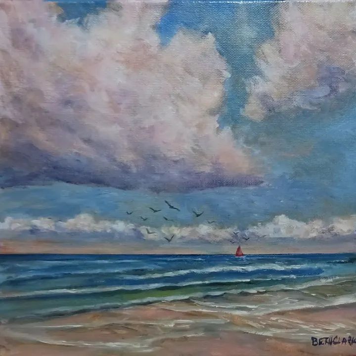 Beth Clark’s art is inspired by her love of nature and animals. She is happiest viewing a sunset, cloud gazing, watching birds or sitting on the back porch enjoying the company of her little dog Gracie. She strives to evoke a sense of peacefulness in her work as well as capturing the personalities of the animals she paints.